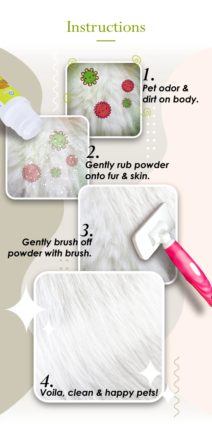 Eliminates odor, grease, dirt & provides smooth fur & healthy skin.