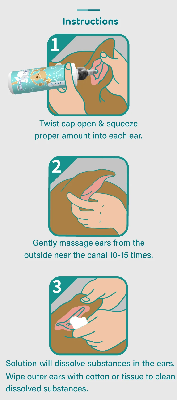 Hypoallergenic ear cleansing formula to dissolve ear wax & dirt.